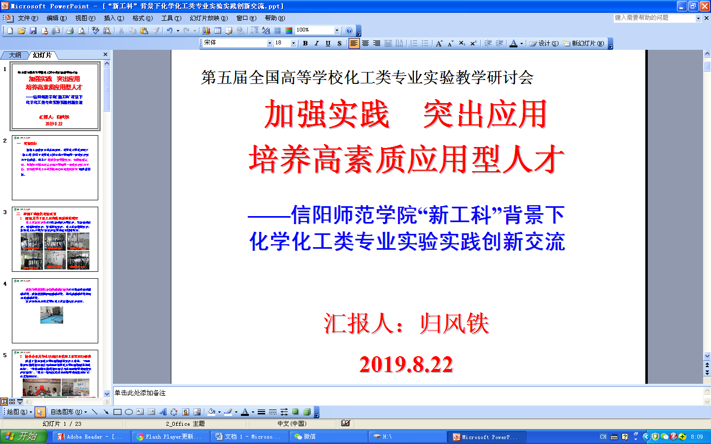 我院化学实验教学中心选派归风铁、王红军、姜通武参加了本次研讨会。在大会自由发言阶段,化学实验教学示范中心主任归风铁代表信阳师范学院做了“加强实践 突出应用 培养高素质应用型人才——信阳师范学院‘新工科’背景下化学化工类专业实验实践创新交流”的发言、汇报,展示了信阳师范学院化工类专业实验实践教学方面的成绩和经验,得到了与会代表的好评。