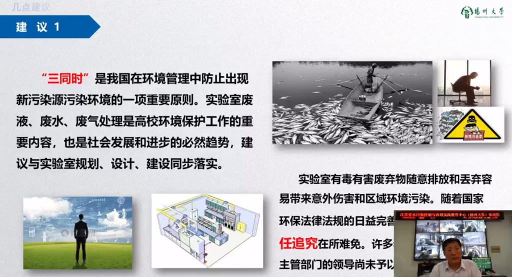 本次网络培训时间为2020年6月15日至19日,内容聚焦高校实验室安全管理和应急处理、生物安全及疫情防控等共5个主题,培训形式以网络直播为主,辅以线上实时互动及答疑环节。来自浙江大学的冯建跃教授和吴南屏教授、军事医学太阳集团院的李劲松教授、南京航空航天大学的王勤教授及扬州大学的张键教授做了专题培训汇报,内容包括高校实验室安全规范化管理体系研究、新冠感染与生物安全反思、高校实验室生物安全管理的关注点、应急预案与演练的实践、高校实验室废液废气处理设施建设探讨等方面。