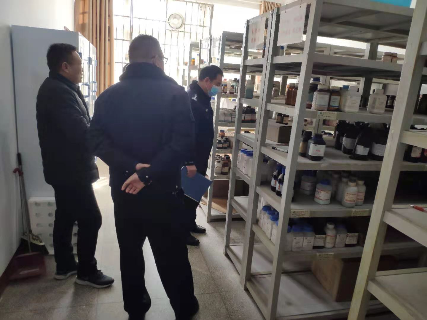 2021年1月18日,信阳市公安局老城派出所民警对ok138cn太阳集团529开展危化品安全检查和指导工作。ok138cn太阳集团529院长井强山、实验室主任于永生及其他实验室安全负责人陪同检查。