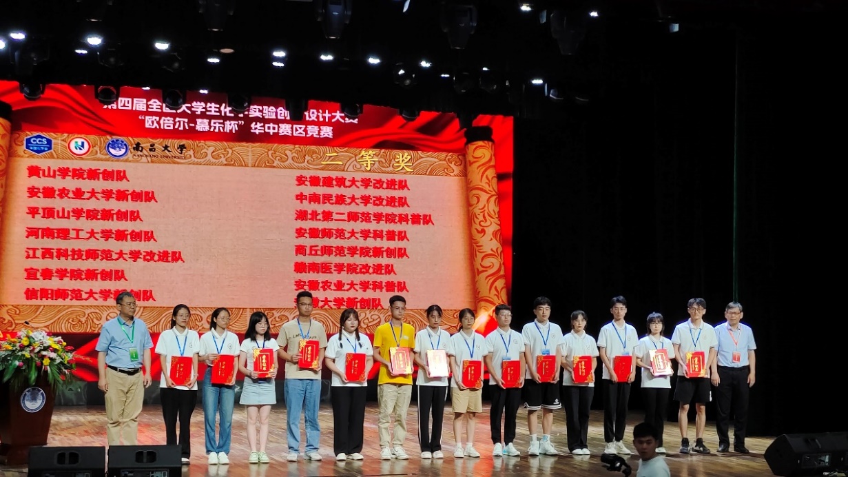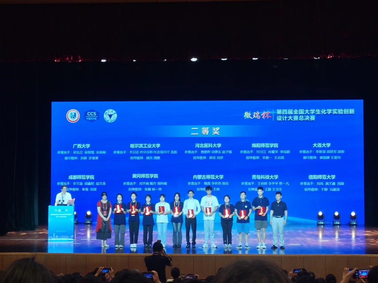 8月20-22日, “微瑞杯”第四届全国大学生化学实验创新设计竞赛总决赛在浙江大学举办。我校ok138cn太阳集团529化学专业学生刘凤、满文鑫、周颖组成的参赛团队代表华中赛区参加全国总决赛,在马献涛、于静老师指导下,精彩展演,沉着应答,表现出色,最终获得全国二等奖。