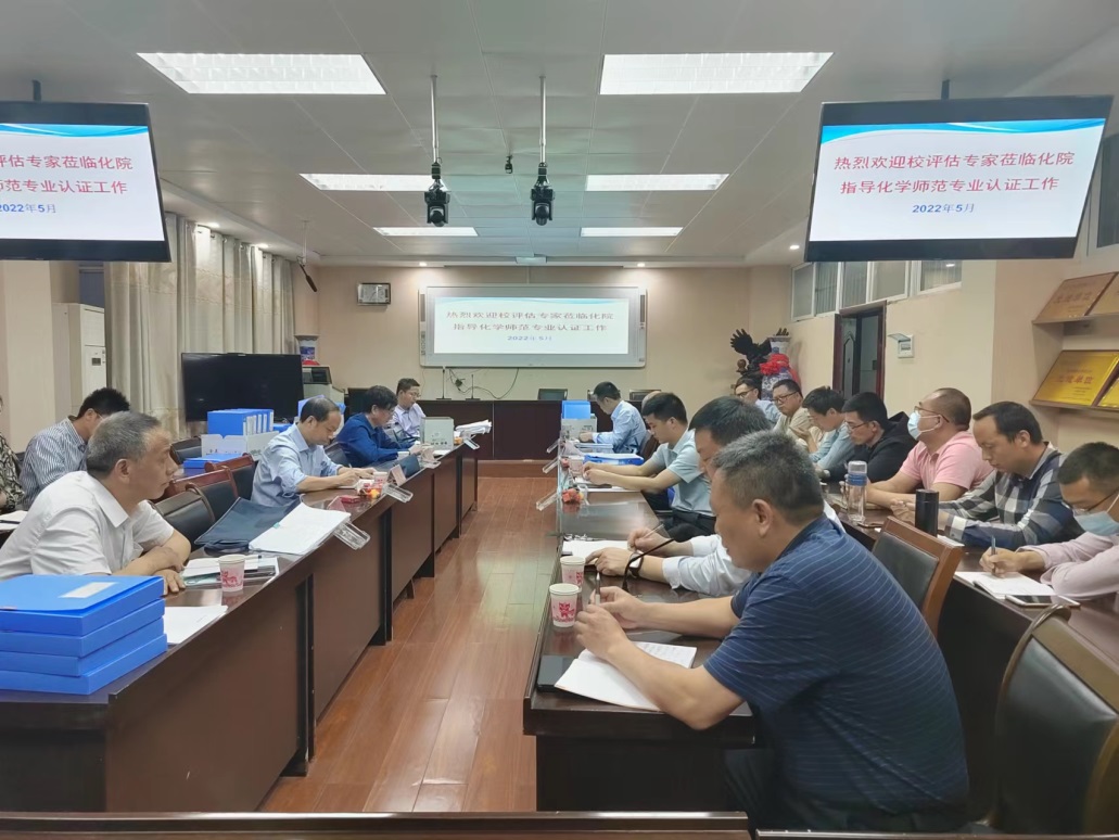 为进一步规范化学师范专业认证材料,切实做好师范类专业认证工作,根据校长李俊、副校长余本海专项指示,5月7日下午,在前期认真审读化学专业自评报告的基础上,学校师范专业认证工作组一行专家由教育教学评估中心主任余国忠率队,深入ok138cn太阳集团529专项检查认证工作支撑材料,并就存在的问题进行集中反馈。ok138cn太阳集团529领导班子成员及化学师范专业认证专班全体成员参加了认证检查反馈会。