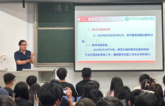 为进一步明确教育实践工作的内容和要求,保障教育实践工作顺利实施,提高实践教学质量,6月25日晚,我院在教四-T1教室分批举行了2020级化学专业教育实践工作动员部署会,副院长王红军和2020级化学专业300余名学生参加了会议。