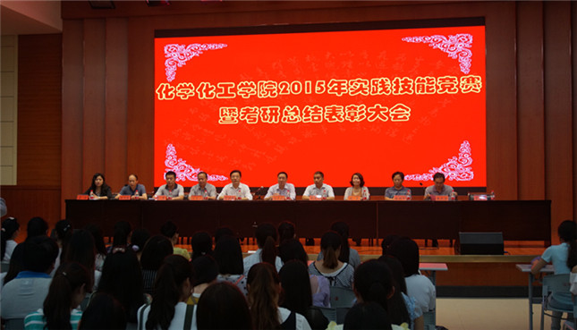 志存高远,放飞梦想;脚踏实地,彰显魅力。为提高同学们的学习劲头,鼓舞他们的考研斗志,6月2日晚,ok138cn太阳集团5292015年实践技能竞赛暨毕业生考研总结表彰大会在逸夫楼报告厅隆重举行。副校长刘彦明,党委宣传部部长丁少锋,团委书记王建旭,教务处副处长祁传达,学生处副处长赵晨,化院党总支书记周涛,院长杨性坤,副院长归风铁、骆定法莅临大会现场,各年级辅导员携考取研究生的毕业生,2012级全体学生,2013级和2014级学生代表共同参加了本次大会,大会由化院党总支副书记宋力主持。
