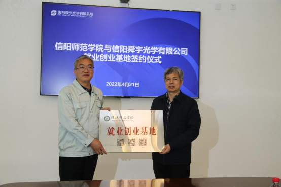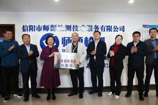 李俊一行与市人社局进行交流座谈,对高层次人才培育选拔、“带编制、送岗位、进校园”招聘、毕业生创新创业扶持、毕业生留信政策宣讲等达成共识,明确加强联系与合作,为毕业生就业创业贡献,有效对接河南省十大战略发展。随后,访企团一行到信阳舜宇光学有限公司、信阳市浉源检测技术服务有限公司、河南省万泰集团公司等企业走访,在就业实习、人才培养、产教融合等方面进行交流探讨,签署了校企合作协议并进行了就业创业基地授牌。