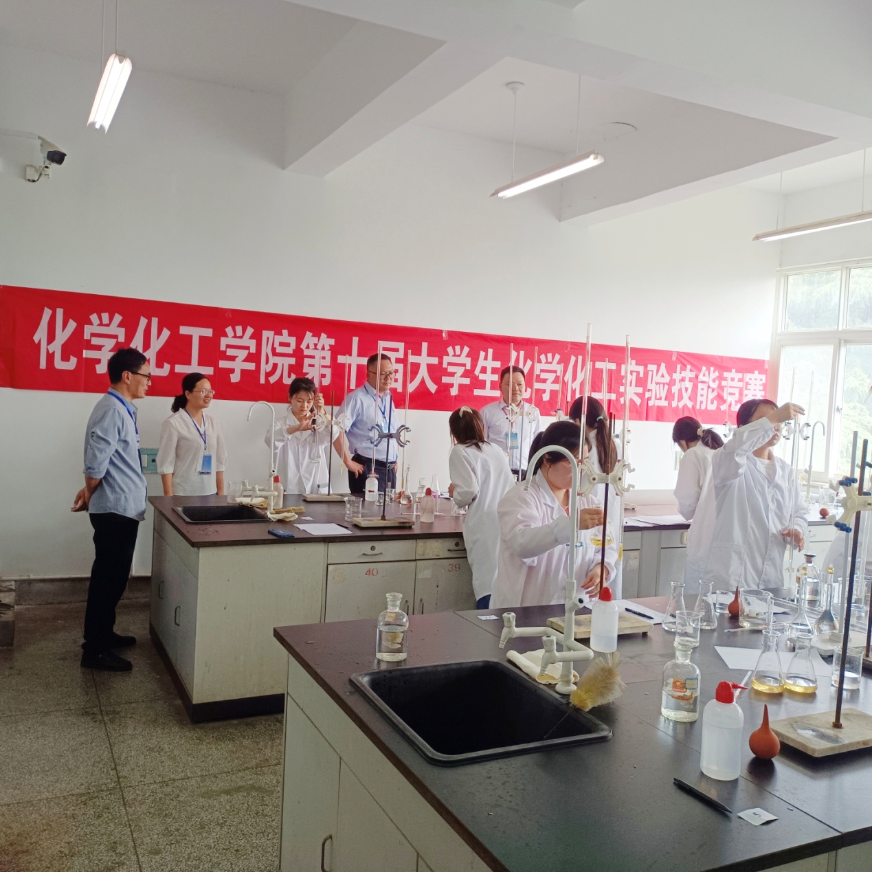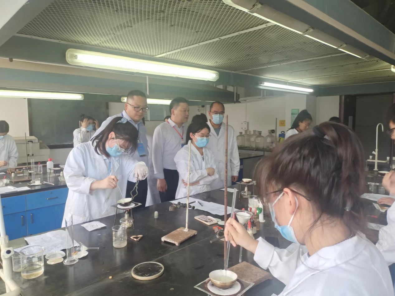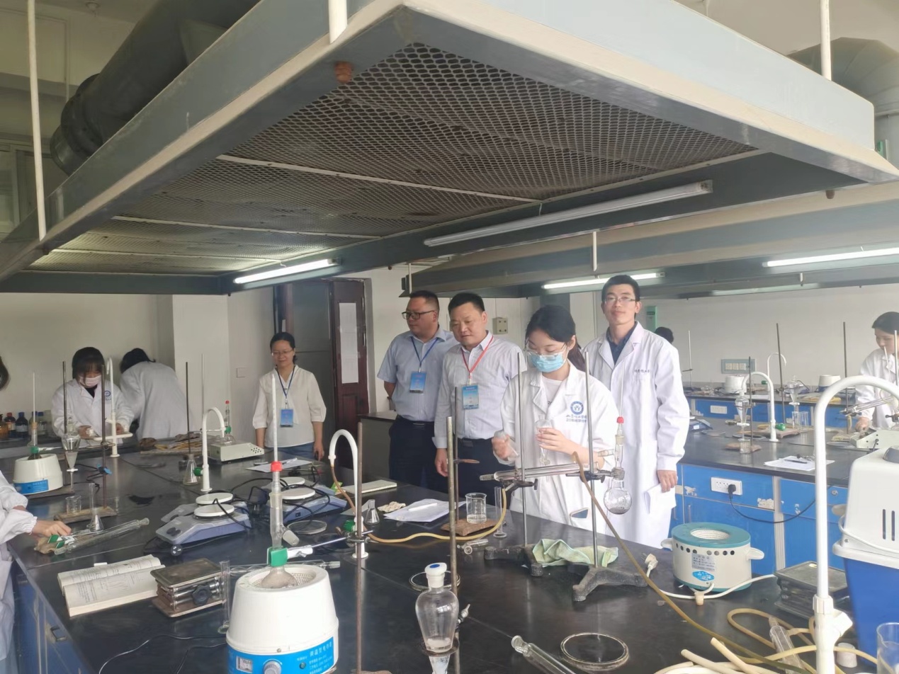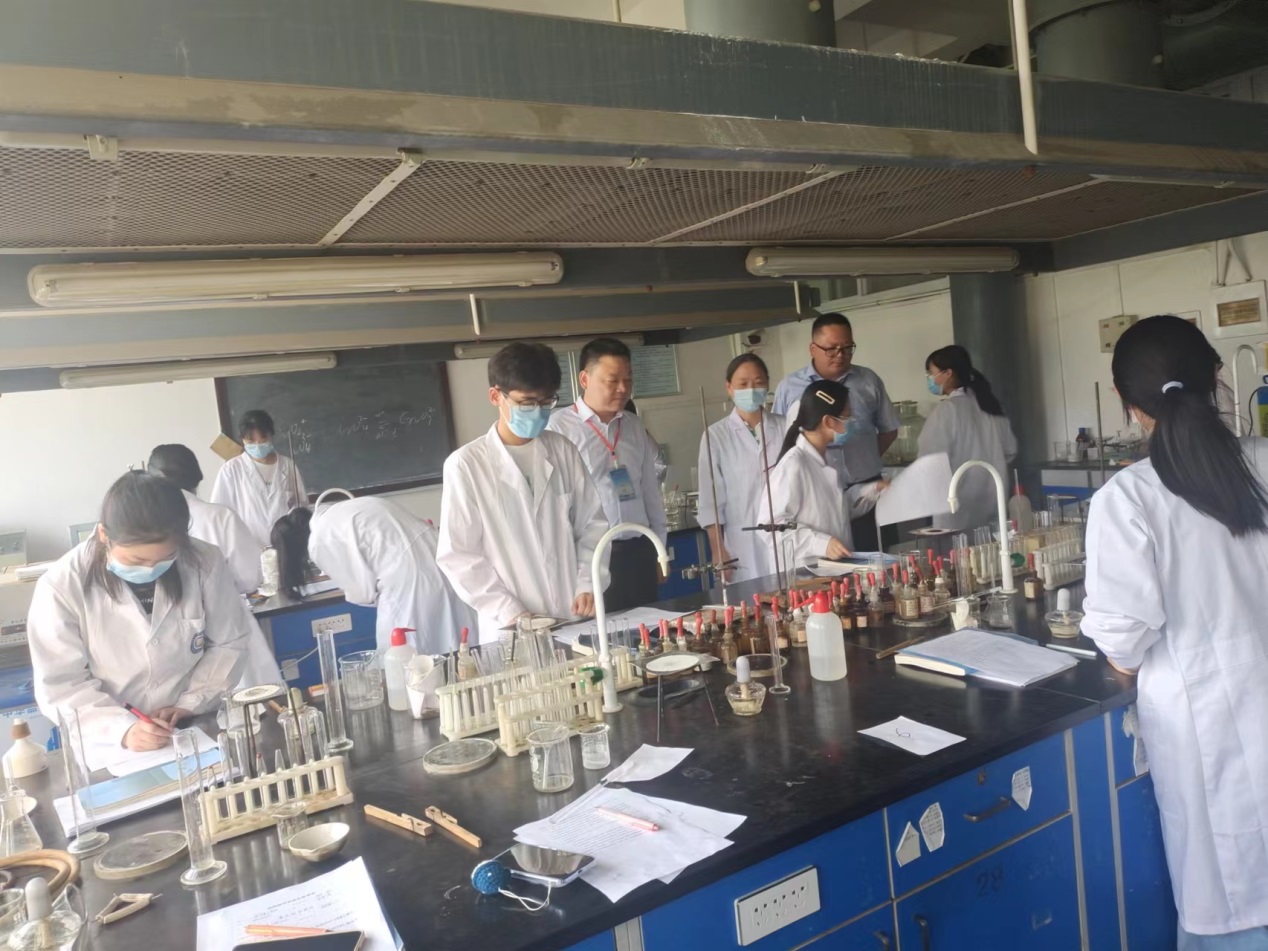 本次竞赛分初赛、复赛、决赛三个阶段,初赛由各班线上线下灵活方式进行选手选拔推荐。复赛以线下卷面笔试的形式进行,主要考查化学实验中的一些基本操作要点、基本知识、实验技能、实验原理、安全知识等。决赛以线下实验室现场实验操作形式进行,主要包括:基础化学实验、综合化学实验和化工实验。通过初赛和复赛的层层筛选,102人进入实验技能竞赛决赛环节。5月24日和25日下午,基础化学实验技能竞赛、综合化学实验技能竞赛和化工实验技能竞赛分别在无机化学实验室、有机化学实验室、分析化学实验室和化工原理实验室分课题小组或单独项目进行。在评委老师的监督下,实验技能竞赛拉开序幕。参赛选手认真研究实验原理和实验步骤、安装仪器、合成产物、记录和分析处理数据、完成实验报告。评委老师们仔细地察看选手实验操作的规范性、仪器使用的标准性、实验设计的探究性,评委工作一丝不苟,严格要求,科学评分,经过三个小时的紧张激烈比赛,专业评分老师为选手的实验操作、成品与效果等进行综合评分,本届实验技能竞赛最终成绩即将公布表彰。