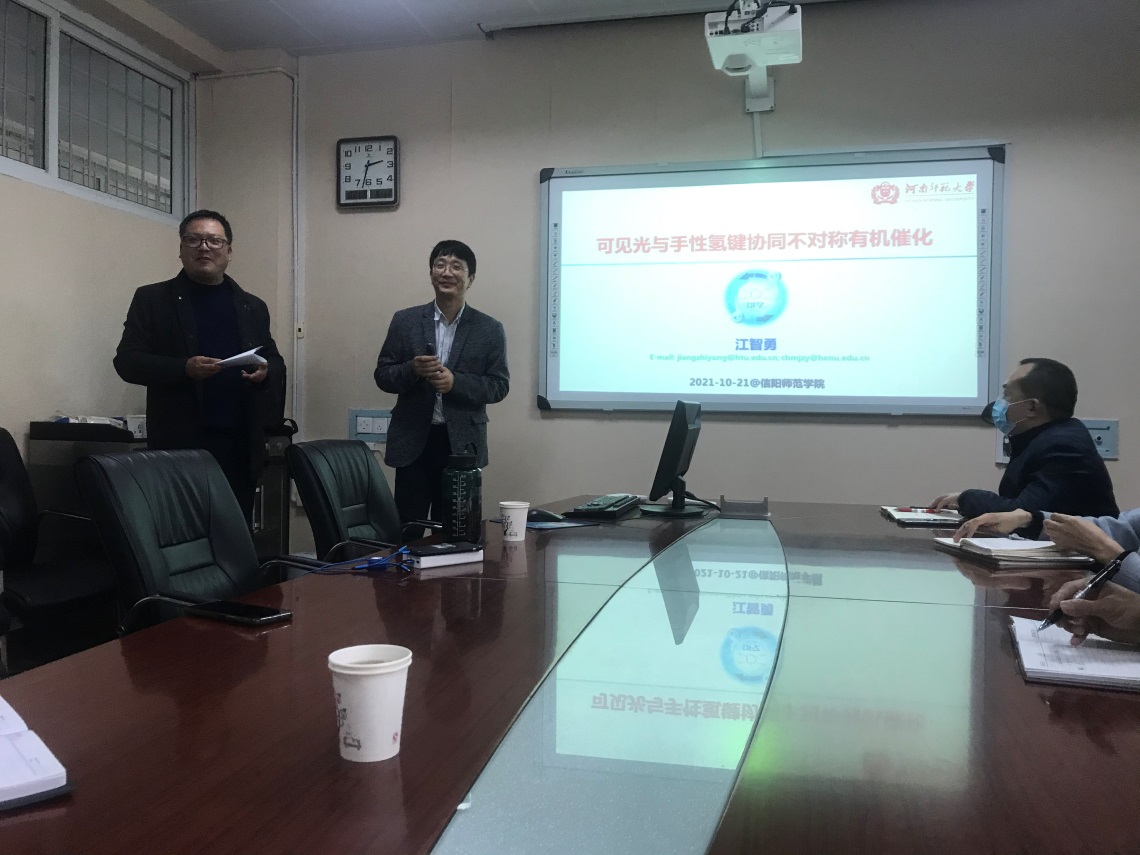 10月21日,应ok138cn太阳集团529邀请,河南师范大学江智勇教授在化学楼210会议室作了题为“可见光与手性氢键协同不对称有机催化”的学术报告,报告会由副院长曹俊涛主持,ok138cn太阳集团529部分青年教师和研究生参加了报告会。
