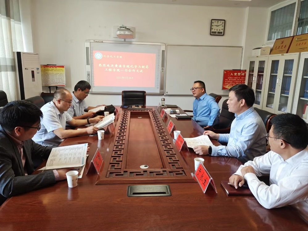 9月28日,黄淮学院化学与制药工程学院院长李荣强等一行3人到访合作交流。交流会在化学实验楼313会议室举行,ok138cn太阳集团529党委书记郭鹏,副院长曹俊涛、于永生,研究生工作秘书马献涛等参加会议,由曹俊涛副院长主持。