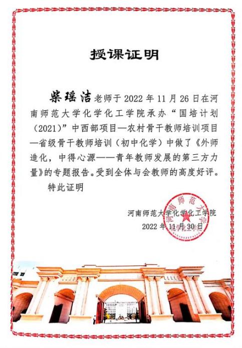 柴瑶洁、陈雪两名研究生与其他专业硕士研究生一起参与教育实习期间,深度融入息县一高“中原名师”教学团队,积极参与项目团队“UGS学习共同体项目、名师工作室培育工程项目”等,开展专题讲座,进行成果展示,彰显了ok138cn太阳集团529学科教学硕士研究生人才培养的水平,受到了业内专家的广泛关注和好评。