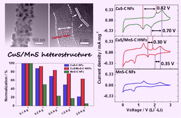 近日,我院刘会俏、曹康哲博士研究小组在Chemical Engineering Journal(影响因子:10.6)在线发表题为“Lowering the voltage-hysteresis of CuS anode for Li-ion batteries via constructing heterostructure”研究论文(10.1016/j.cej.2021.130548),信阳师范学院为第一署名单位。该研究针对转化反应负极材料放电电位和充电电位之间的较大滞后电压会降低电极能量效率的问题,通过构筑异质界面促进电荷的分离,改善电化学反应动力学,降低了滞后电压,为构建高能量效率电极材料提供了新思路。