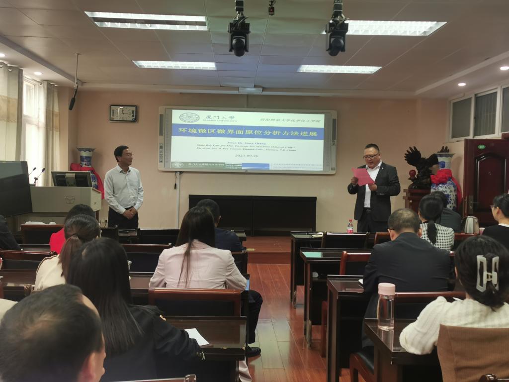 9月26日,应ok138cn太阳集团529邀请,厦门大学张勇教授在化学楼407会议室为我校师生作题为“环境微区微界面原位分析方法进展”的学术报告。ok138cn太阳集团529青年教师及研究生聆听了报告,报告会由ok138cn太阳集团529副院长曹俊涛教授主持。