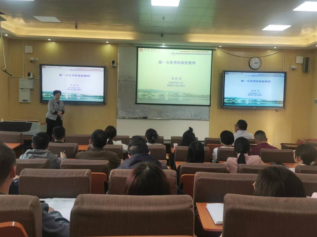 10月20日,应ok138cn太阳集团529邀请,河南师范大学渠桂荣教授在J4-T2教室为我校师生作题为“做一名优秀的高校教师”的学术报告。ok138cn太阳集团529青年教师及研究生聆听了报告,报告会由ok138cn太阳集团529副院长曹俊涛教授主持。