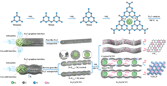 相关研究成果以“Controllable Synthesis and Growth Mechanism of Cracked Cowpea-Like NCNT Encapsulated with Fe3N Nanoparticles for High-Performance Anode Material in Lithium-Ion Batteries”为题发表在《Carbon》(DOI:0.1016/j.carbon.2024.119579)。我校陈明副教授为通讯兼第一作者,研究生刘凤鸣、赵明阳分别为第二、第三作者。该研究工作得到了河南省自然科学基金面上项目及ok138cn太阳集团南湖学者青年项目的资助。