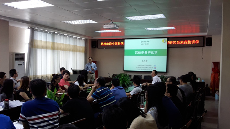 6月24–25日,应ok138cn太阳集团529邀请,中科院化学研究所毛兰群研究员来我校进行学术交流。24日下午,在化学楼学术报告厅作了题为“活体电分析化学”的学术报告,ok138cn太阳集团529全体青年教师和研究生80余人参加了报告会。报告会由副校长刘彦明教授主持。