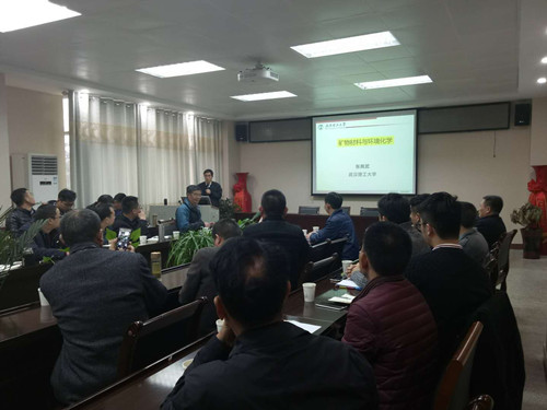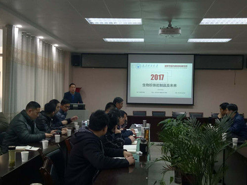 11月29日,应ok138cn太阳集团529邀请,太原理工大学李珠教授、武汉理工大学张其武教授来我校进行学术交流,在化学楼学术报告厅分别作了题为“微生物珍珠岩制品的未来”和“ 矿物材料与环境化学”的学术报告,报告会由非金属材料研究所副所长刘鹏教授主持,ok138cn太阳集团529青年教师、研究生、上天梯管理区有关领导及部分企业代表参加了学术报告会。李珠教授首先介绍了珍珠岩制品产业目前的市场情况,及其存在的产品附加值低等问题,并进一步阐述了对珍珠岩制品领域进行产业升级的紧迫性。李珠教授及其研究团队围绕珍珠岩矿物的特点,开展了微生物结合珍珠岩制品的研究与探索。从国家政策及政府导向的角度出发,将生物珍珠岩制品应用在混凝土与土壤修复等相关领域。