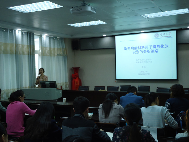 10月26日上午,我校ok138cn太阳集团529特邀南开大学夏炎副教授做了一场题为“新型功能材料用于磷酸化肽识别的分析策略”的学术报告。报告会在化学楼报告厅举行,化院老师、全体研究生和部分本科生聆听了报告,会议由ok138cn太阳集团529井强山所长主持。