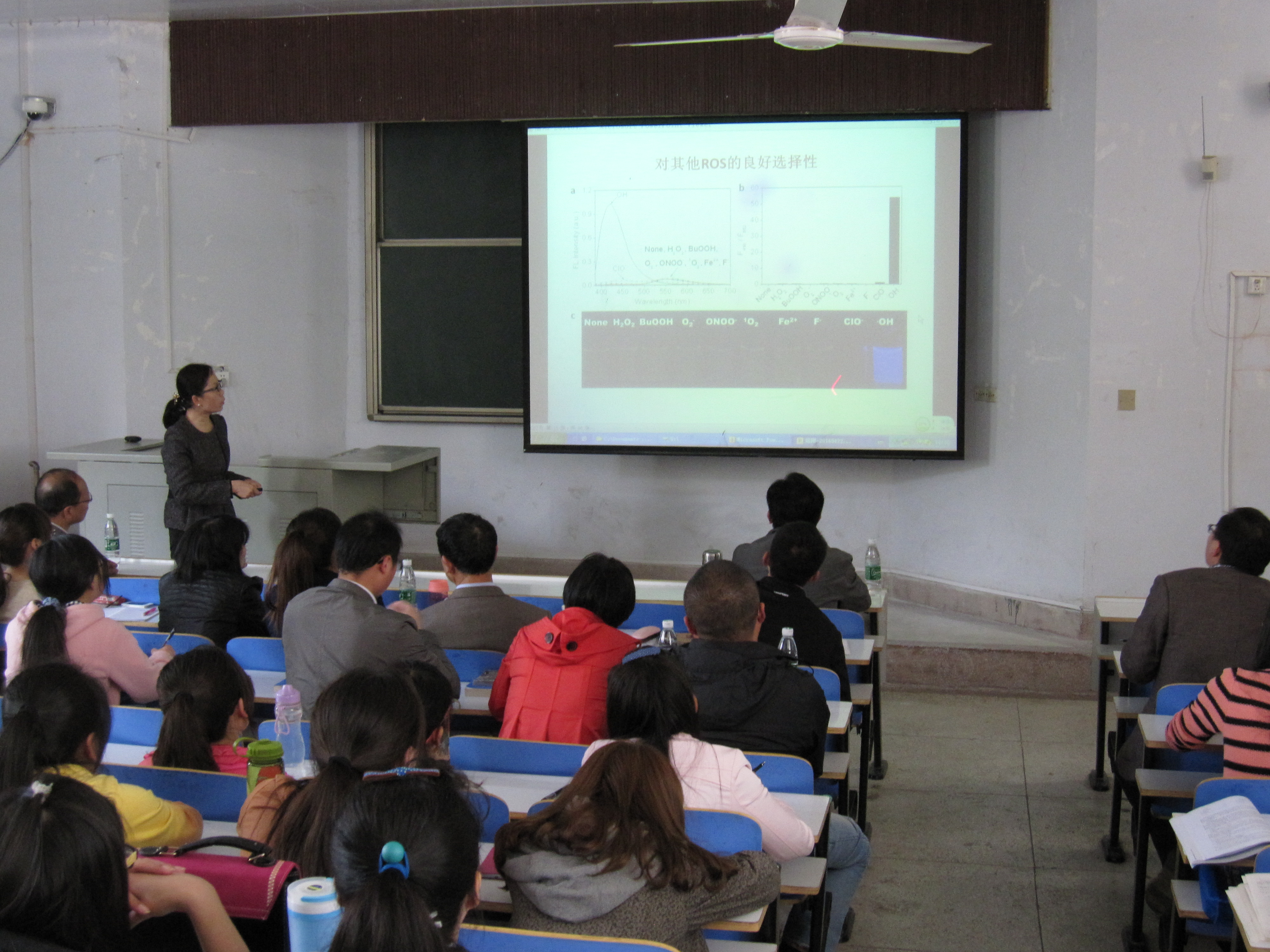 易涛教授首先介绍了响应型分子功能性材料的研究背景,从动力学驱动、热力学可逆开始,讲述了分子敏感材料及对外界刺激的响应能力,重点结合自己的太阳集团,从比度荧光探针检测ROS和DNA、荧光开关材料用于活细胞成像和超分子凝胶材料用于可视化检测三个方面,讲授了响应型探针材料及生物成像,易教授精彩的报告赢得了师生的阵阵掌声。会后,易涛教授与ok138cn太阳集团529师生就报告相关内容进行了深入交流。