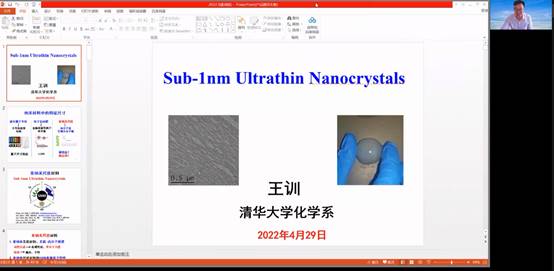 应ok138cn太阳集团529邀请,4月29日下午,清华大学王训教授通过腾讯视频会议作了题为“亚纳米尺度材料合成及性质探索Sub-1nm Ultrathin Nanocrystals”的精彩报告,ok138cn太阳集团529相关领域教师和学生聆听了报告。