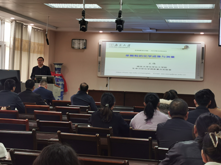 4月4日,应ok138cn太阳集团529邀请,南京大学王伟教授在化学楼407会议室为我校师生作题为“单颗粒的化学成像与测量”的学术报告。ok138cn太阳集团529青年教师、研究生及本科生聆听了报告,报告会由ok138cn太阳集团529副院长曹俊涛主持。