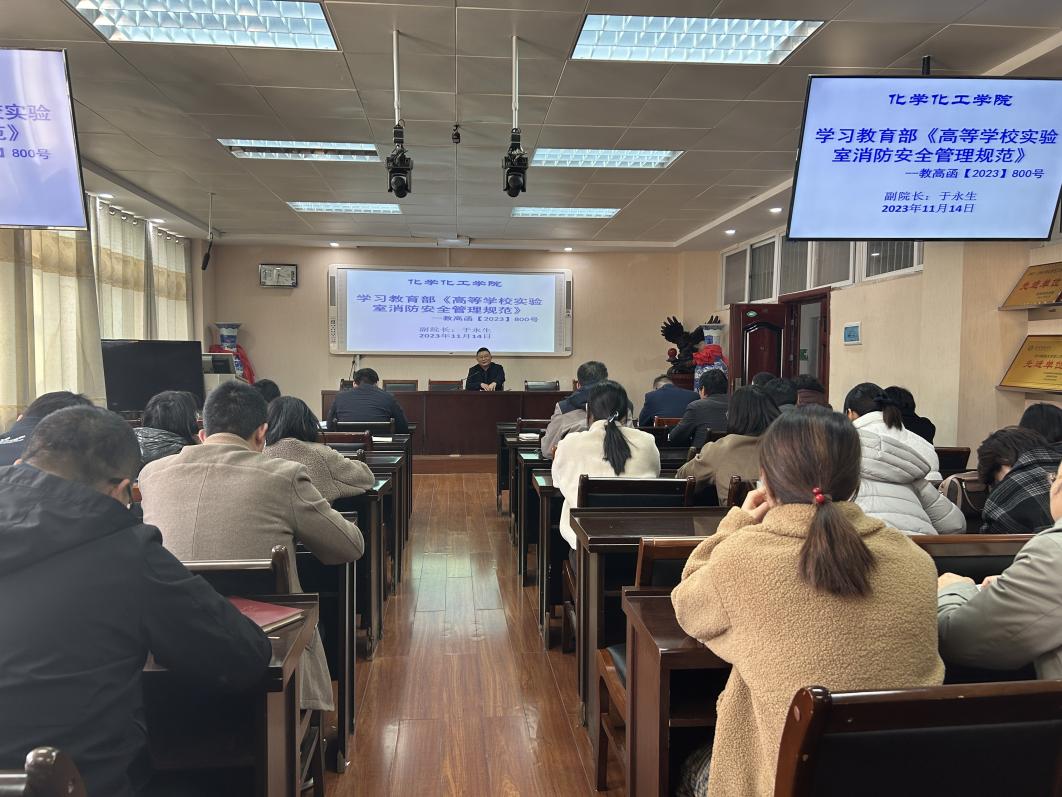 为进一步规范实验室安全管理,20231114日下午,我院在化学实验楼407会议室召开《高等学校实验室消防安全管理规范》集中学习宣讲会。会议由学院党委书记郭鹏主持,学院领导班子成员及全体教师参加了此次会议。