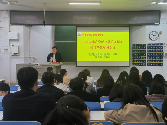 为深入开展党纪学习教育,强化全体党员纪律意识,进一步严明党的纪律规矩,ok138cn太阳集团529党委4月16日在教四多媒体教室举办党纪学习教育专题党课。学院党委书记郭鹏为全体师生党员主讲“《中国共产党纪律处分条例》的修订条款对照学习”专题党课。