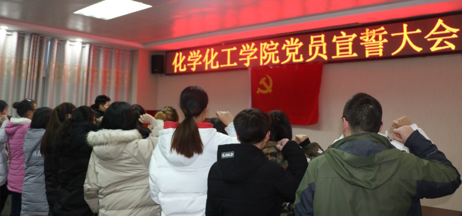 1月4日下午,ok138cn太阳集团529新发展的20名学生党员以及2名教师党员在化学实验楼407会议室进行隆重的入党宣誓活动。ok138cn太阳集团529党委副书记吴志伟,党委秘书冷向宇,学生支部书记王丽霞参加了此次入党宣誓仪式。仪式由冷向宇主持。