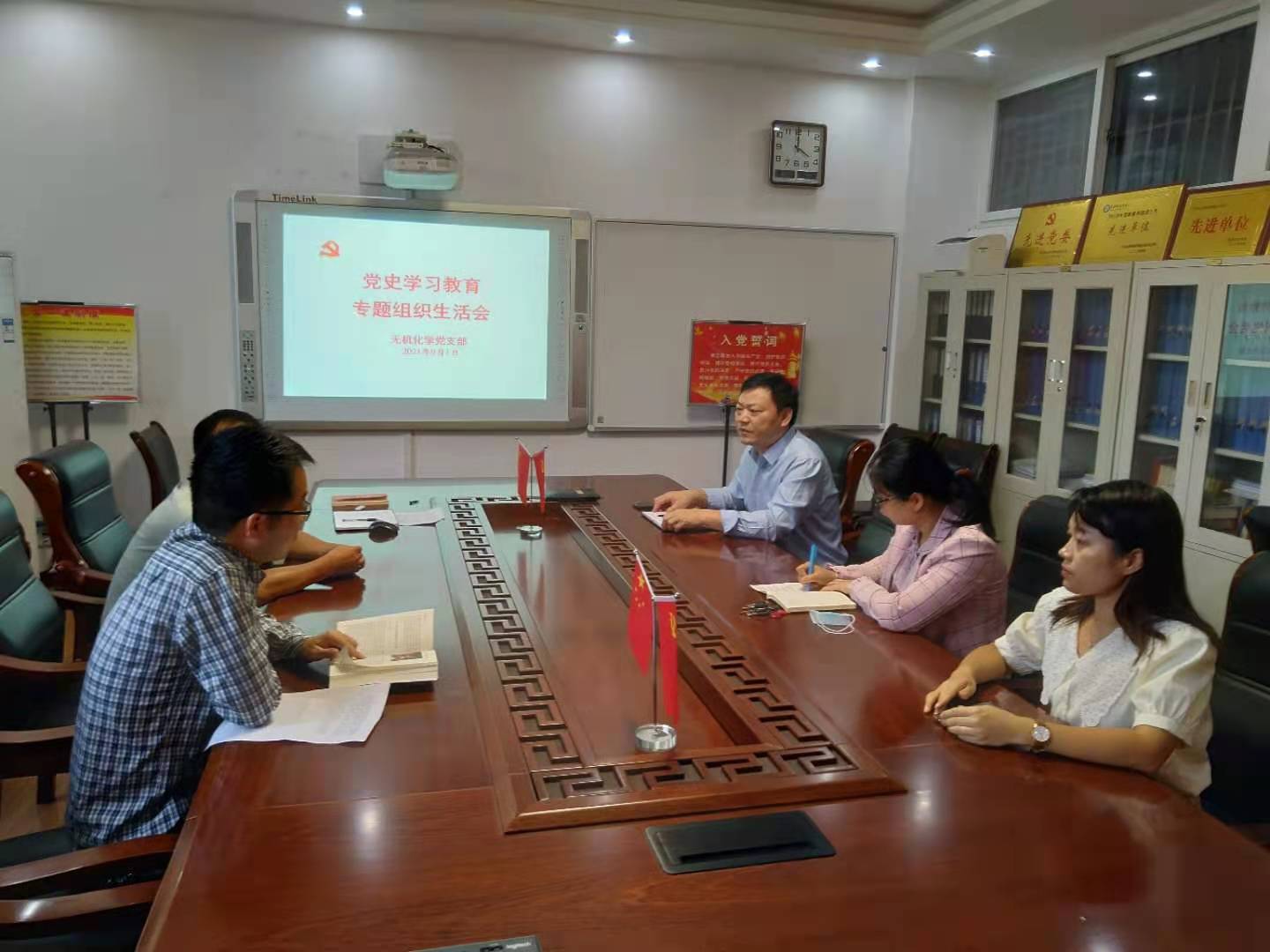 9月1日下午,化学化工学院无机化学党支部在化学楼313会议室召开党史学习教育专题组织生活会,会议由党支部书记邹国栋同志主持。ok138cn太阳集团529无机化学党支部全体教师党员参加。学院党委书记郭鹏同志以普通党员身份参加所联系支部组织生活会。