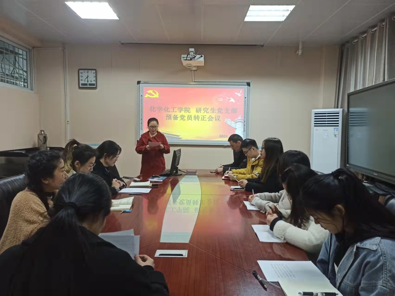 为巩固党员队伍质量,严格履行党章规定的预备党员转正手续,2021年11月30日,ok138cn太阳集团529研究生支部在实验楼407室召开预备党员转正大会,研究生支部6名正式党员和5名预备党员参加本次大会,其中有2名预备党员转为正式党员。