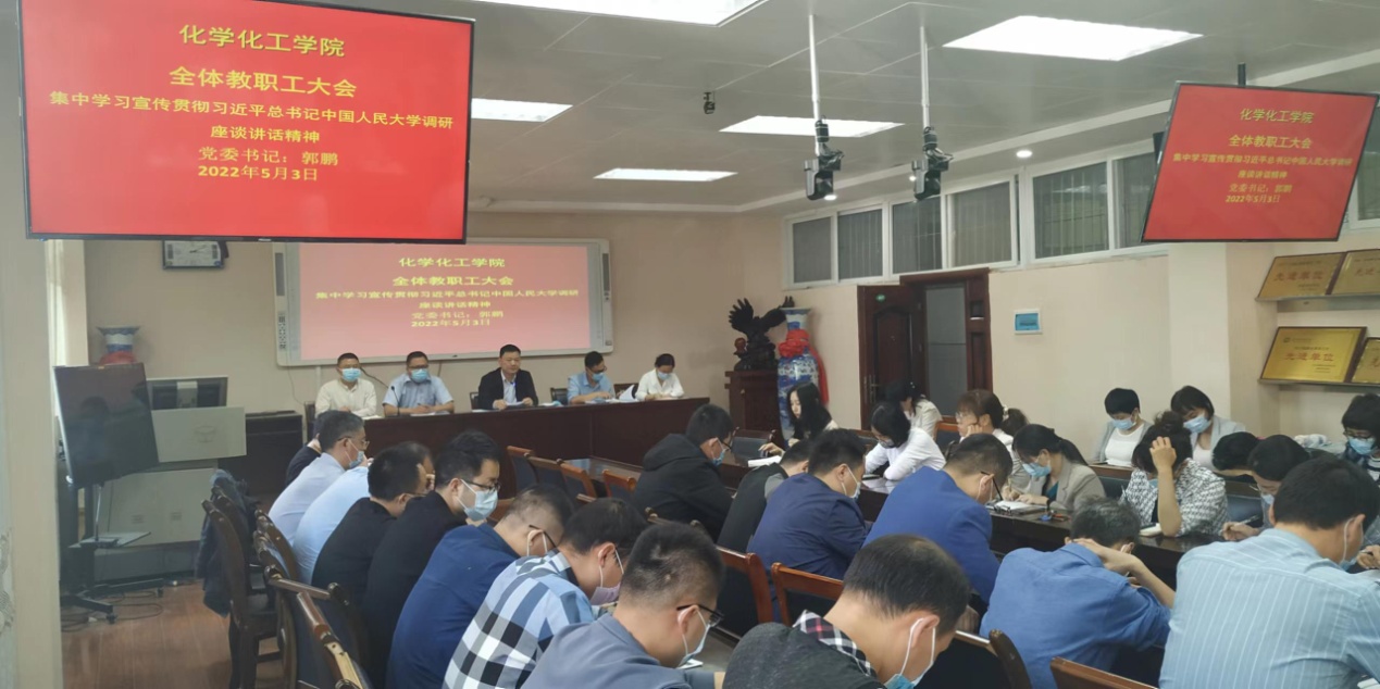 5月3日下午,ok138cn太阳集团529召开全体教师大会,专题学习传达贯彻习近平总书记在中国人民大学考察时的重要讲话精神。学习活动由党委书记郭鹏主持,全体教职员工参加了学习活动。