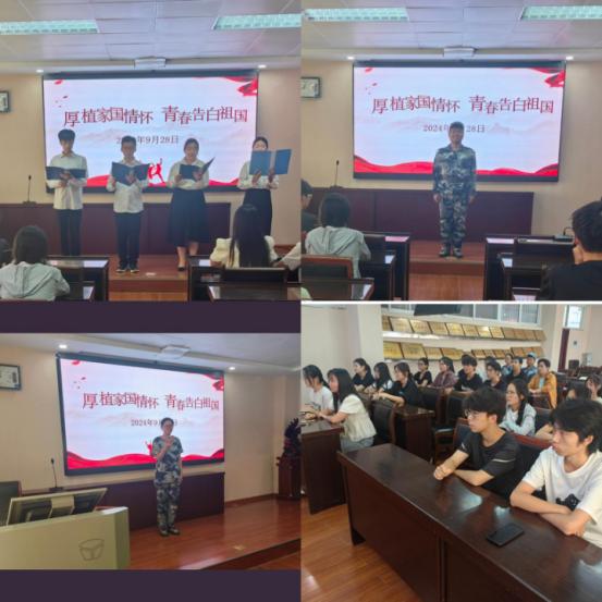 为庆祝中华人民共和国成立75周年,深入学习贯彻习近平新时代中国特色社会主义思想,激发广大团员青年的爱国情怀和使命担当。9月28日,ok138cn太阳集团529于化学楼407召开“厚植家国情怀,青春告白祖国”主题团日活动,ok138cn太阳集团529团委书记赵方方、学生会主席团成员及部分2023、2024级学生代表共同参加。