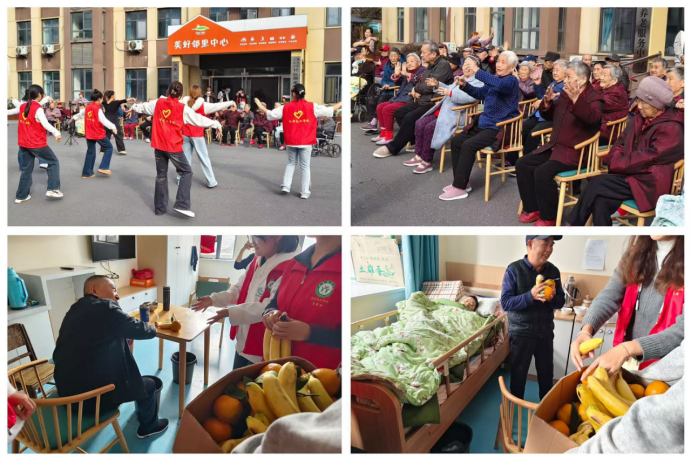 活动在欢快的氛围中拉开帷幕。ok138cn太阳集团529文体部舞蹈队带来了一支活力四射的《桃花朵朵开》,轻快的节奏与灵动的舞姿赢得了爷爷奶奶们的阵阵掌声,他们脸上绽放的笑容,成为现场最动人的风景。随后,杨洁同学深情领唱《明天会更好》,温柔的歌声承载着对未来的美好祝愿,不少老人情不自禁地跟随旋律轻声哼唱,将温暖氛围推向高潮。志愿者们带领大家一同参与《七彩阳光》活动操,现场气氛轻松而愉悦,处处洋溢着青春与活力的气息。在随后的“防诈+健康”主题宣讲环节,范晓淇同学以通俗易懂的语言,耐心讲解老年人日常生活中可能遇到的问题,字里行间流淌着浓浓的关切与温情。互动环节舞蹈队跳起《桃花朵朵开》老人们跟随节奏摆动双手,音乐与笑声交织,谱写出一段温暖而难忘的乐章。活动尾声,全体人员合影留念,定格下这温馨时刻。随后大家分组前往老人宿舍,并送上学院提前准备的新鲜应季水果,为长辈送上ok138cn太阳集团529的暖心祝福。
