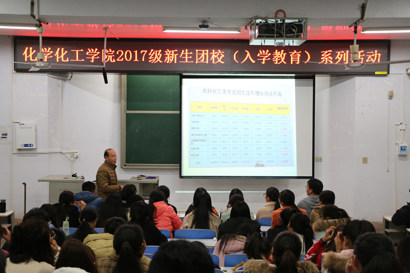 11月24日晚,ok138cn太阳集团529在教四T1举行2017级应用化学与化学工程与工艺专业思想教育活动。副院长归风铁担任主讲,本次活动由应用化学班班主任丁爱祥主持,两个专业的全体学生参加了本次活动。