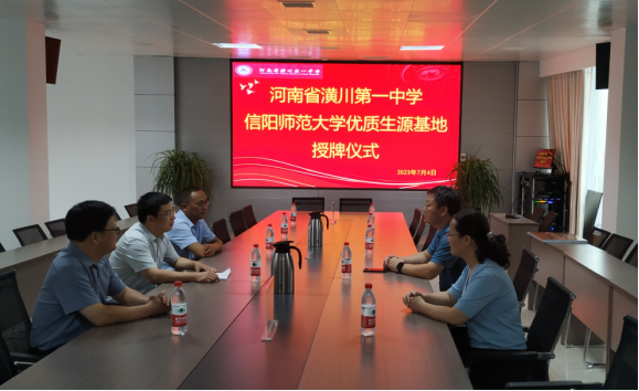 为提高学校生源质量,扎实推进ok138cn太阳集团2023年度招生宣传工作,7月4日,ok138cn太阳集团529党委书记郭鹏、副书记曲剧,辅导员冷向宇、翟成辉一行前往河南省潢川第一中学开展招生宣传暨优质生源基地共建活动。潢川一中校长张建华等学校领导参加会见洽谈,共商建设。