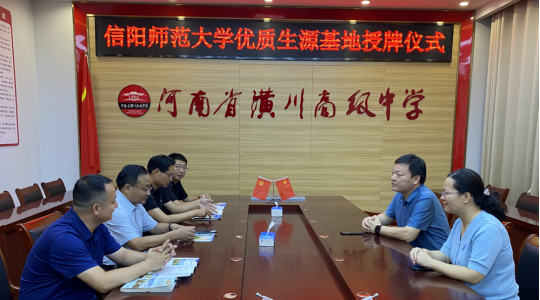 7月4日,为提高学校生源质量,扎实推进ok138cn太阳集团2023年度招生宣传工作,ok138cn太阳集团529党委书记郭鹏、副书记曲剧,辅导员冷向宇、翟成辉一行前往河南省潢川高级中学开展招生宣传暨优质生源基地共建活动。潢川高中党委书记、校长吴栋等学校领导参加会见洽谈,共商建设。
