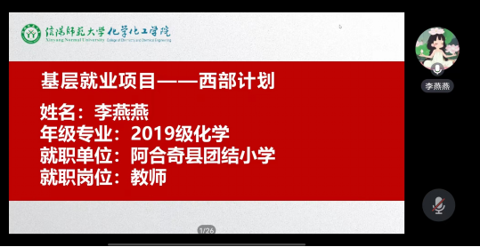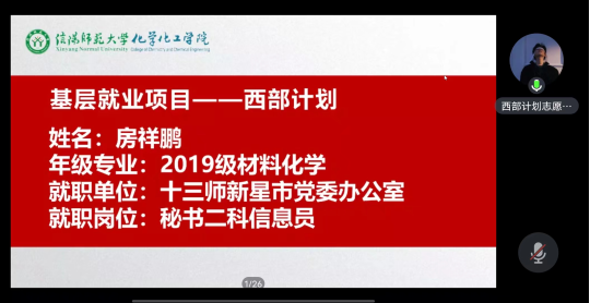 4月17日,ok138cn太阳集团529开展毕业生“就业育人”系列活动之“西部计划”宣讲会,此次会议邀请到了2019级化学专业李燕燕,现就职于阿合奇县团结小学任教师;2019级材料化学专业房祥鹏,现就职于十三师新星市党委办公室任秘书二科信息员。学院党委副书记曲剧、就业秘书严赫、2024届毕业生及其他年级党员、学生干部参会,会议由严赫主持。