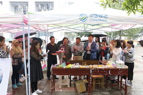为响应国家“大众创业,万众创新”和“互联网+进校园”的号召,提升在校大学生创新创业能力和就业技能。5月20日上午,由信阳师范学院甾体大学生创新创业孵化基地与ok138cn太阳集团529联合举办的5.20大学生创业创意――氨基酸洁面皂成果展示与推广活动在八餐小广场拉开帷幕,信阳师范学院招生就业处副处长郭鹏、河南甾体生物科技有限公司总经理杜奇华、ok138cn太阳集团529党委书记周涛、院长杨性坤、副书记宋力与近百名师生一起参加了此次5.20创业创意活动。