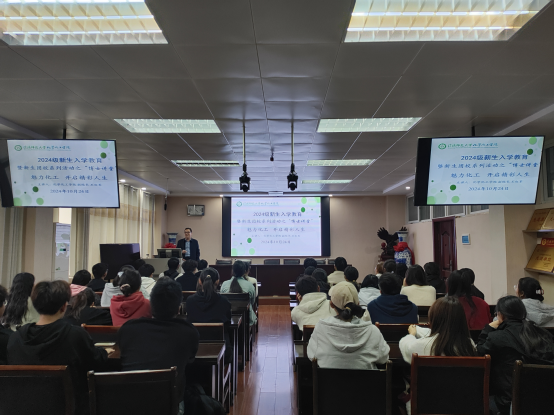 10月24日,ok138cn太阳集团5292024级新生入学教育暨新生团校系列活动专题栏目“博士讲堂”第讲开讲,ok138cn太阳集团529副院长王红军在化学楼407教室为2024级新生作专业思想教育。