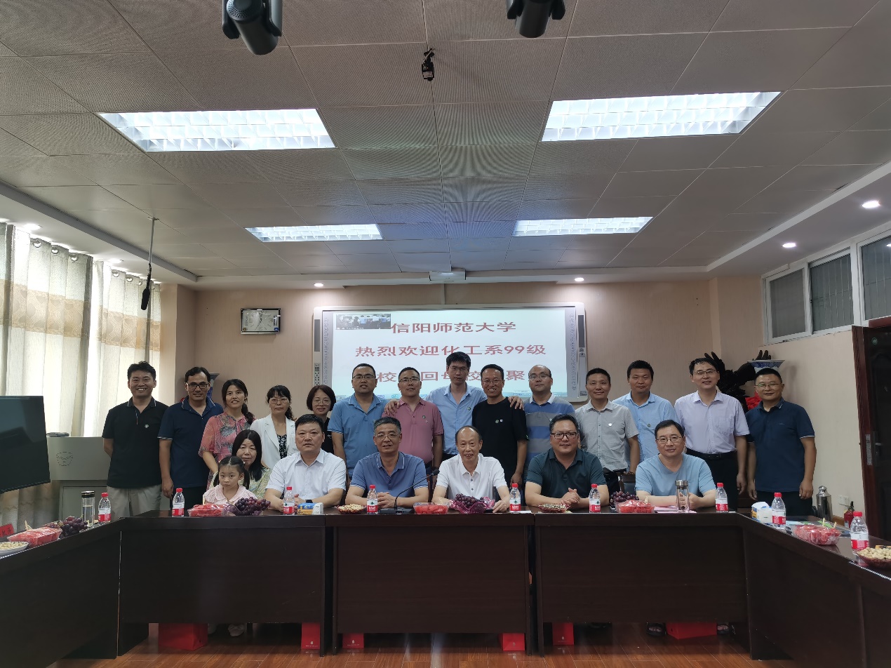 2023年8月12日,值此信阳师范学大学更名揭牌庆典喜乐氛围中,ok138cn太阳集团5291999级化工本科班校友荣返母校,开展毕业20年师生座谈交流活动。