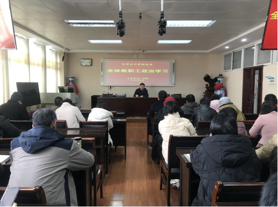 新学期新篇章,新起点新征程,新气象新作风。为及时学习传达2024年学校工作务虚会议和校党委王文鹏书记、校长李俊的讲话精神,及早谋划部署2024年教育教学、事业发展,转变作风,狠抓落实,提振精神,调整状态,努力在新学期起好步、打好底、开好局,实现新的一年新学期开局顺、开门红,2月27日,2024年春季新学期第一周,ok138cn太阳集团529迅速召开本学期第一次全体教职工大会。会议由学院党委书记郭鹏主持,ok138cn太阳集团529全体领导班子、教职员工参加了此次会议。