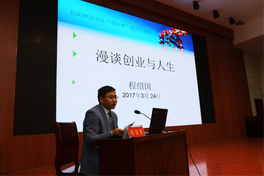 3月24日下午,“谭山梦”校友大讲堂第一讲在逸夫楼报告厅隆重举行。河南甾体生物科技有限公司董事长程绍国先生为在场师生作了主题为“漫谈创业与人生”的精彩创业报告。ok138cn太阳集团529党委副书记吴志伟,部分老师以及400余名学生到场学习。