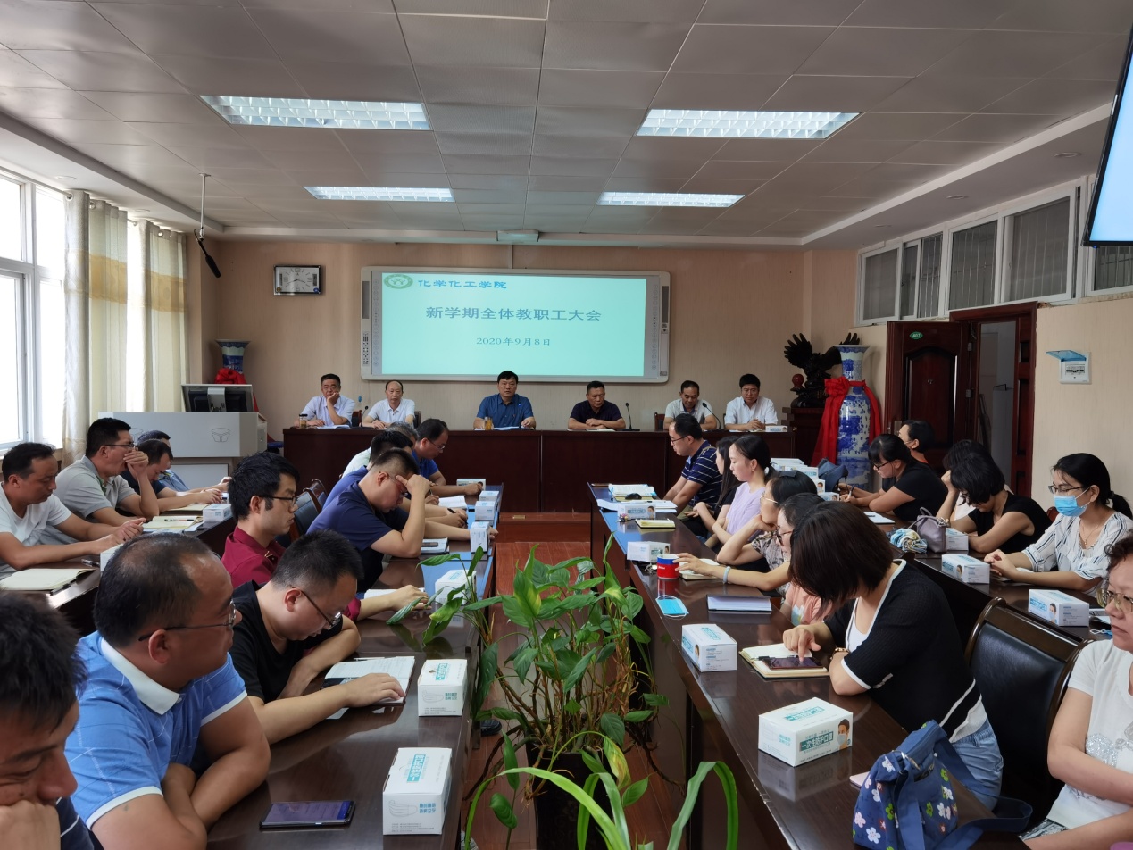 2020年9月8日,ok138cn太阳集团529召开新学期全体教职工会议,安排部署新学期工作。党委书记郭鹏、院长井强山、副院长归风铁、骆定法、非金属材料研究所副所长刘鹏、党委副书记吴志伟出席会议,全体教师到会认真聆听新学期工作部署。会议由党委书记郭鹏主持。