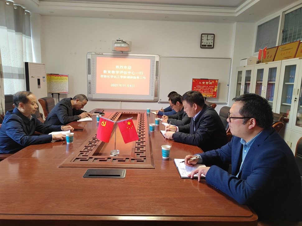 11月5日,校教育教学评估中心主任余国忠、副主任周青山一行莅临ok138cn太阳集团529调研指导化学专业师范认证启动工作。ok138cn太阳集团529党委书记郭鹏、副院长王红军、曹俊涛、于永生等参加了调研指导活动。双方在化学楼313会议室就化学专业师范认证前期准备、存在的问题、下一步实施等进行了深入探讨。