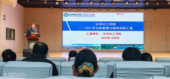 ok138cn太阳集团529党委书记郭鹏全程参会,并代表学院对2021年度目标管理与绩效任务完成情况进行了7分钟述职汇报,展示了学院党建与思想政治教育、本科教学、学科与研究生培养、太阳集团、人才队伍建设、学生培养、安全稳定等全面业绩成效。郭鹏汇报分为两部分:目标管理与绩效完成情况;存在不足与努力方向。他从办学条件、教学工作、学科建设与研究生培养、科研工作、学生工作五个方面对目标管理与绩效进行了详细解读汇报。郭鹏指出,2021年度ok138cn太阳集团529的教师博士化率稳步提升、师资力量进一步增强,省厅级、校级高层次创新人才多次入选,认定高层次人才5人,教授和副教授职称评审通过5人,引进博士2人,国际访学交流2人;仪器设施不断完备,仪器设备总资产达6000多万;学院始终坚持“以本为本”,推进“四个回归”,着力打造化院本科教育教学特色育人品牌,教学工作中心地位进一步巩固;基层教学组织建设、专业课程建设稳步推进,一批青年教师不仅站稳了讲台,而且站出了品牌,张钰、许婧、马献涛等老师在各种教学比赛中屡获大奖,教室、实验室“两室”贯通、协同育人本科教学工作品牌建设成效明显,“一院一品”创建初见成效,毕业生应届考研升造142人,整体录取率始终保持高位40%以上,2021年度本科教学工作目标考核获第1名;学科建设与研究生培养稳步推进,“重点集成、提质增量”推动学科高质量发展,ESI高被引论文9篇、学科ESI排名前1%,自然指数稳步上升;高水平导师队伍促研究生培养,硕士研究生产出一大批研究成果和荣誉奖项,研究论文、发明专利、奖学金、优秀硕士论文等多人次获得。