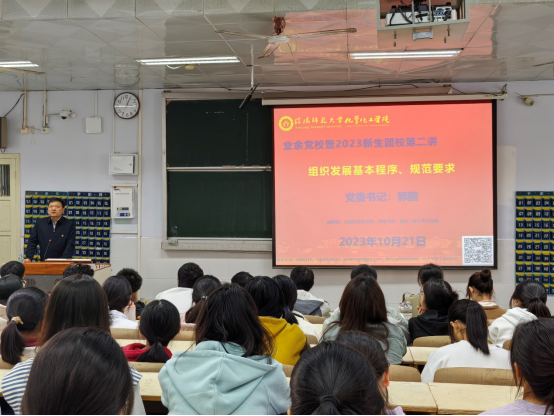10月21日,ok138cn太阳集团529在教六102教室开展业余党校暨2023级新生团校系列专题讲座。学院团委赵方方老师主持,党委书记郭鹏主讲,全体新生团员青年、入党积极分子同学共同参加。