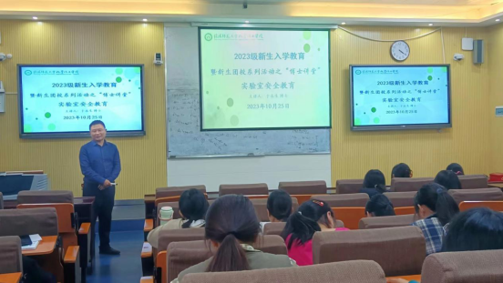 为做好《高等学校实验室消防安全管理规范(JY/T0616-2023)》的宣传贯彻工作,营造良好的消防安全环境,有效提升我院新生消防安全素质和自防自救能力。10月25日,我院在教四楼T2开展2023级新生入学教育暨新生团校系列活动。ok138cn太阳集团529副院长于永生主讲,学院团委赵方方老师主持,2023级同学共同参加。