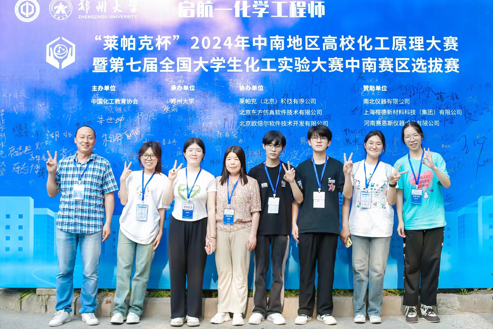 7月11至7月14日,由中国化工教育协会主办的“莱帕克杯”2024年中南地区高校化工原理大赛暨第七届全国大学生化工实验大赛中南赛区选拔赛在郑州大学举行,我院2021级材料化学和应用化学专业本科生邱佳晴、王恩赐、马静琪组成的“东湖”队和范雨晴、王珍卉、王召洋组成的“南湖”队参加了本次比赛。经过2天紧张而激烈的比赛,“南湖”队和“东湖”队分别荣获中南赛区一等奖和二等奖。
