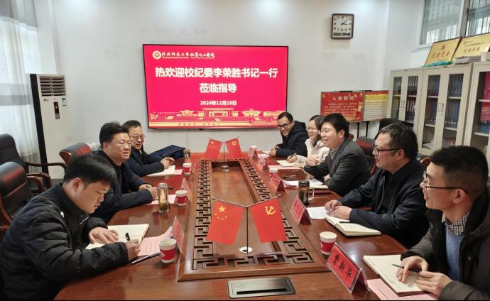 12月19日,校纪委书记李荣胜在校纪委副书记兼目标管理与督查办公室主任周经兵陪同下,到ok138cn太阳集团529调研,指导学院纪检监察工作和目标考核工作,并举行座谈会。ok138cn太阳集团529党委书记吴志伟、院长曹俊涛和班子成员参加座谈会。