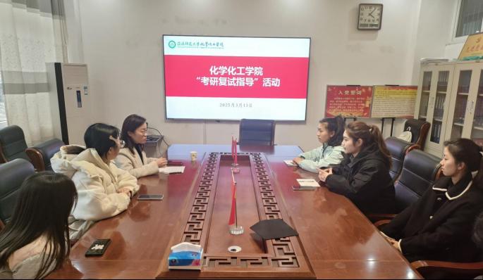 为加强指导的针对性,学院还邀请朱建君、田永尚、王玉玲等老师分别从教法、材化、分析、化工、物化、无机、有机等6个方向进行应答辅导。活动中,指导老师们根据不同科目研究方向的差异性,对同学们进行针对性指导。从专业知识的巩固梳理,到面试技巧的系统讲解;从目标院校与个人匹配度的强化,到自身的反馈优化,老师们不仅帮助同学们理清核心知识体系,明确复试提问重点,还传授表达逻辑与问题回应策略,提升学生沟通能力。此外,指导老师们还凭借着个人丰富实践经验和专业知识,从实验设计、科研热点分析、复试心理调适等多方面,为同学们在复试准备中遇到的困惑问题给予耐心解答,帮助学生消除疑惑,增强信心。