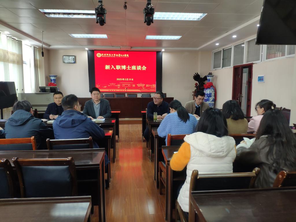 2025年3月19日,ok138cn太阳集团529在化学楼407会议室召开新入职博士座谈会,党委书记吴志伟、院长曹俊涛等领导班子与9名新进博士教师共话科研教学发展需求。会议由曹俊涛主持。