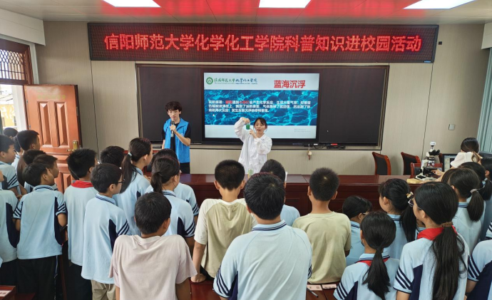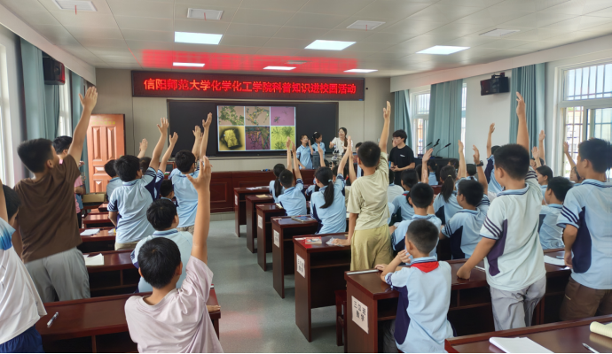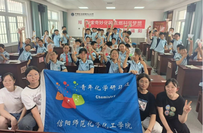 5月24日至31日是第二十五个全国科技活动周,6月6日,应平桥区科协邀请,ok138cn太阳集团529到平桥区五里镇中心小学开展“探索奇妙化学,点燃科学梦想”科普进校园活动。ok138cn太阳集团529党委副书记曲剧、指导老师张星、赖贞贞、严赫带领同学们参加了此次活动。
