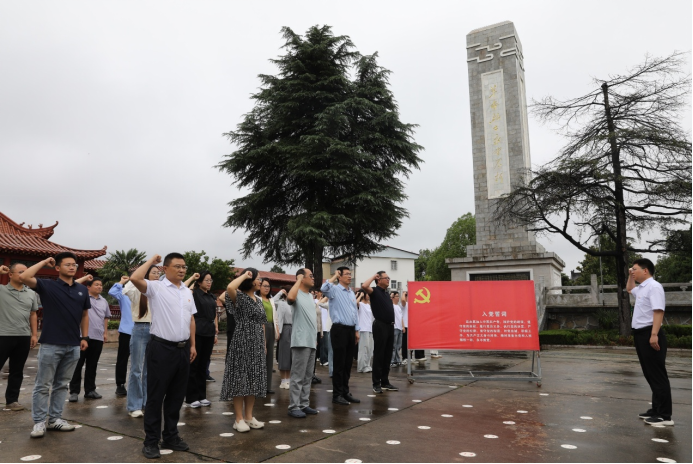 在庄严肃穆的烈士纪念碑前,师生党员面向党旗整齐站立,举起右手,齐声重温入党誓词,深切缅怀先烈们的伟大功勋。在商城县革命烈士纪念馆,通过200余件实物、500余幅图片和数10部影像资料等形式,让师生党员真切感受到革命先烈们为党的事业忠诚执着、百折不挠、勇于献身的革命精神,为中国革命胜利和民族解放作出的伟大贡献。